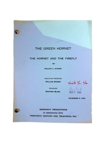 This is a production acquired The Green Hornet: The Hornet and the Firefly by William L. Stuart screenplay. This measures approximately 11" x 8 1/2".