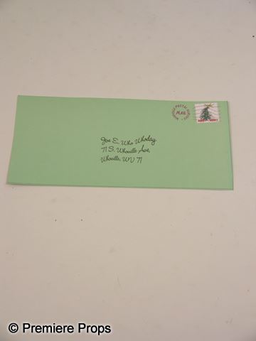 Screen used, green 'Joe E. Who Whoday' mail fake large envelope with address and postage.