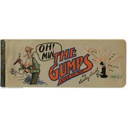 The Gumps Book #4 (Landfield-Kupfer Printing Co., 1918). The Gumps by Sidney Smith started out in the daily newspaper strips, and quickly led to a series of books. Issued in a very limited print run, very few copies remain today. This book measures 5.25" x 13.25" and is in excellent condition for its age. It has a nice spine and tan pages which are not brittle. An extremely rare book, this one is almost never offered for sale. Condition: VG Tan pages. Overstreet 2001 GD 2.0 value = $121; FN 6.0 value = $423. Important notice: We expect to be auctioning lots at the rate of 200-250 per hour. Sometimes eBay Premier live bid software cannot keep up with that pace, so we strongly recommend that you place a realistic proxy bid now as insurance to avoid disappointment. Also please note that all Heritage/CAA lots purchased through eBay Premier carry a 20% Buyer's Premium.
