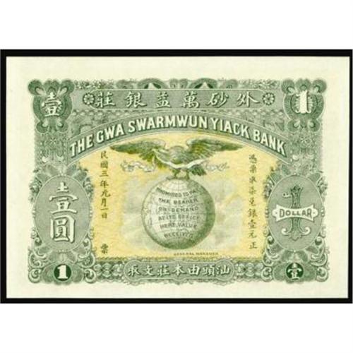 <style type="text/css"> body, td, th { font-family: Arial, Helvetica, sans-serif; font-size: 12px; color: #482424; margin: 0px; padding: 0px; } #header { background-image: url(http://www.bowersandmerena.com/ebay/images/template_v3_01.gif); clear: both; background-color: #590303; border-top-width: 2px; border-top-style: solid; border-top-color: #B38C4F; } #header #header_wrapper { height: 75px; clear: both; width: 800px; margin-right: auto; margin-left: auto; background-image: url(http://www.bowersandmerena.com/ebay/images/template_v3_03.gif); background-repeat: no-repeat; background-position: right; color: #F3EDCC; } #header #header_wrapper #header_logo { float: left; height: 75px; width: 444px; background-image: url(http://www.bowersandmerena.com/ebay/images/template_v3_02.gif); background-repeat: no-repeat; font-size: 10px; text-transform: capitalize; color: #B38C4F; } #header #header_wrapper #header_right { float: left; height: 75px; width: 356px; text-align: right; } #header #header_wrapper #header_right #headerLoginBtn { margin-bottom: 30px; } #header #header_wrapper #header_right input#txtSearch { color: #B49056; border: 1px solid #B49056; width: 175px; padding-top: 3px; padding-right: 3px; padding-bottom: 4px; padding-left: 3px; } #nav { height: 37px; background-image: url(http://www.bowersandmerena.com/ebay/images/template_v3_05.gif); clear: both; } #nav #nav_wrapper { height: 35px; width: 800px; margin-right: auto; margin-left: auto; border-left-width: 1px; border-left-style: solid; border-left-color: #B38C4F; } #nav #nav_wrapper a { padding-right: 15px; padding-left: 15px; border-right-width: 1px; border-right-style: solid; border-right-color: #B38C4F; height: 25px; padding-top: 10px; display: block; float: left; text-decoration: none; font-weight: bold; color: #5D0303; } #nav #nav_wrapper a:hover { color: #B38C4F; } #nav #nav_wrapper #search { float: right; padding-top: 7px; } #nav #nav_wrapper #search #txtSearch { font-family: Arial, Helvetica, sans-serif; font-size: 10px; text-transform: uppercase; color: #D2AE75; border: 1px solid #B38C4F; padding: 3px; } #content_bgd { background-image: url(http://www.bowersandmerena.com/ebay/images/template_v3_09.gif); background-repeat: repeat-y; background-position: center; padding-top: 15px; padding-bottom: 15px; background-color: #FBFBDB; } #content_wrapper { clear: both; height: auto; width: 800px; margin-right: auto; margin-left: auto; } .LotDetailWhite { line-height:normal; font-size:13px; font-family: arial,helvetica,sans-serif; color: White; font-weight: bold; } .LotDetailInformation { line-height:normal; font-size: 13px; font-family: arial,helvetica,sans-serif; } .LotDetailMessage { line-height:normal; font-size: 13px; font-family: arial,helvetica,sans-serif; color: red; } } tr.HeaderAuctionTitle td { color: #000000; font-weight: bold; padding: 2px; background-image: url(http://www.bowersandmerena.com/ebay/images/template_v3_05.gif); background-repeat: repeat-x; border-bottom-width: 1px; border-bottom-style: solid; border-bottom-color: #B38C4F; } table.AuctionSummary a, table.AuctionSummary a:link, table.AuctionSummary a:visited { color: #0000FF; text-decoration: none; } } td.tableHeaderLeft { border-left-width: 1px; border-left-style: solid; border-left-color: #B38C4F; } td.tableHeaderRight { border-right-width: 1px; border-right-style: solid; border-right-color: #B38C4F; } td.tableCellMiddle { border-left-width: 1px; border-left-style: solid; border-left-color: #B38C4F; border-right-width: 1px; border-right-style: solid; border-right-color: #B38C4F; padding: 5px; } tr.footer td { border-top-width: 1px; border-top-style: solid; border-top-color: #B38C4F; } </style> </head> <body> <div id="header"> <div id="header_wrapper"> <div id="header_logo"> </div> <div id="header_right"> </div> </div> </div> <div id="nav"> <div id="nav_wrapper"> <a href="http://www.bowersandmerena.com">Our eBayLive Auctions</a> <a href="#PaymentInfo">Payment Information</a> <a href="#ShippingInfo">Shipping Information</a> <a href="#About">About Bowers and Merena</a> </div> </div> <div id="content_bgd"> <div id="content_wrapper"> <table width="100%" border="0" cellpadding="5" cellspacing="0" class="AuctionSummary"> <tbody> <tr class="HeaderAuctionTitle" style="height: 25px;"> <td align="left" class="tableHeaderLeft" > </td> <td align="center" class="tableHeaderRight"> <span style="font-size: large;">Lot #883. Private, Local and Misc. Banks and Issuers. The Gwa Swarmun Yiack Bank.</span> </td> </tr> <tr> <td colspan="3" class="tableCellMiddle"> 1914, Swatow, 1 Silver Yuan, S/M W1-1, by private company, Wei Sha Wan Yick Money Bureau, Choice Unc.