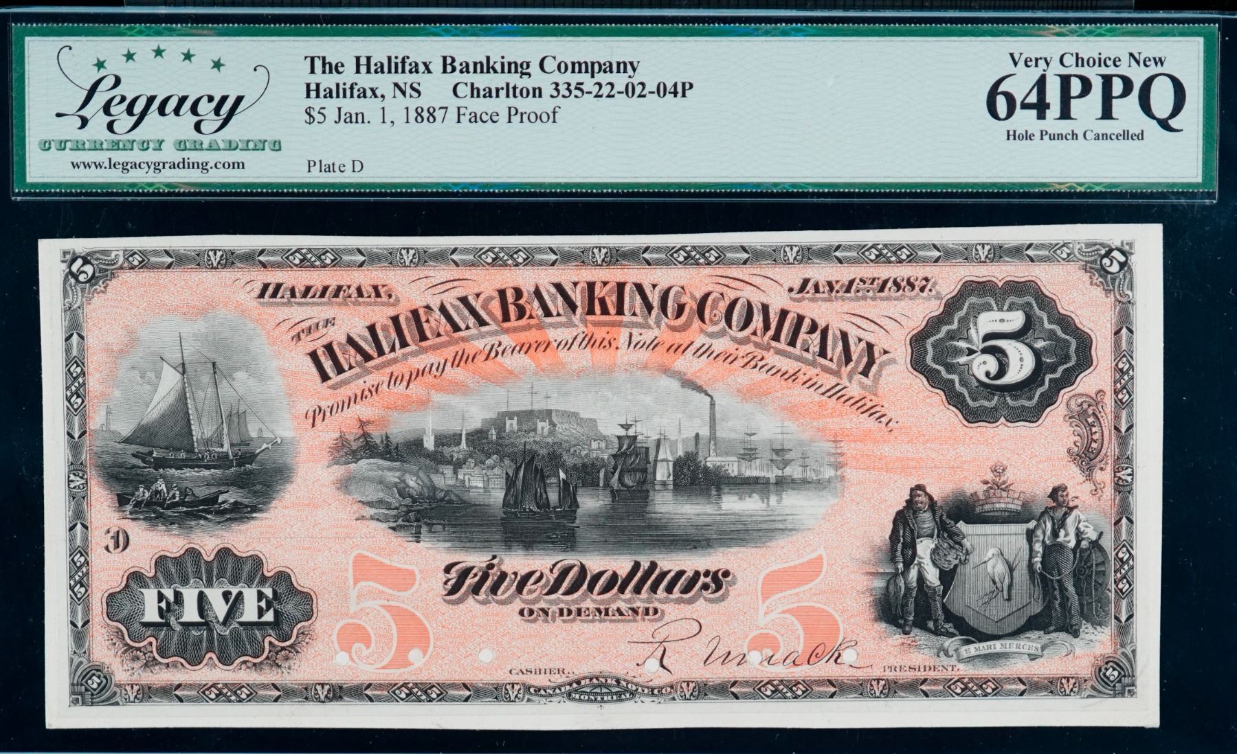 The Halifax Banking Company 1887 $5 CH-335-22-02-04FP LCG Choice Uncirculated-64PPQ