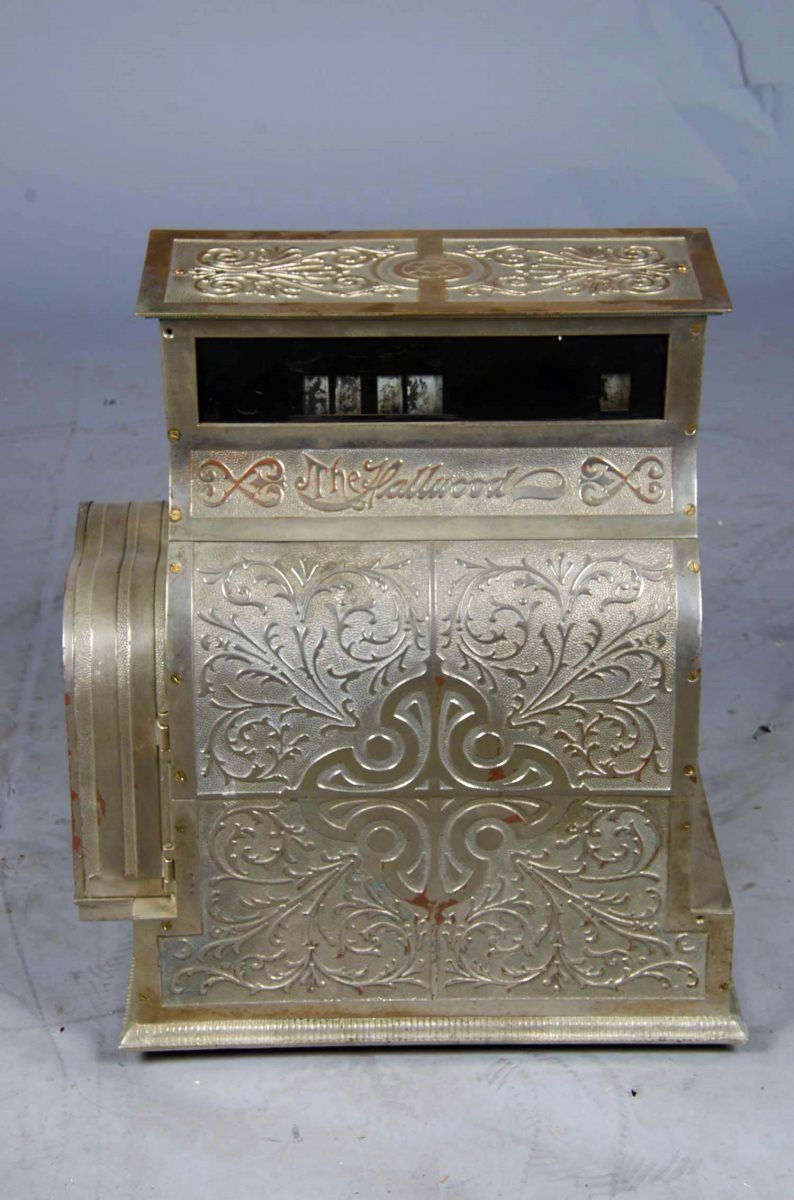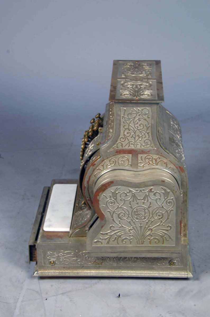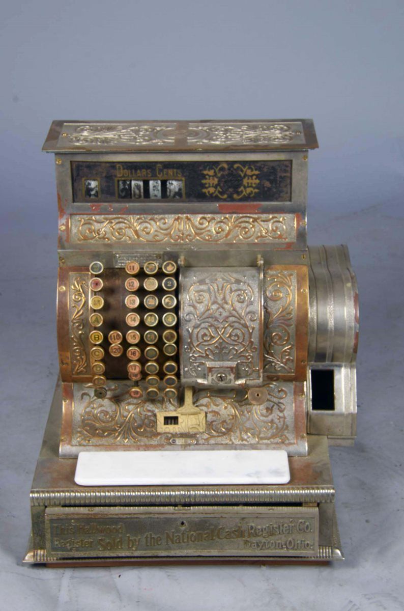 Model 16131 Pat. 1890s, Serial No. N44506, beautifully detailed nickel-plated brass in fine scroll design with receipt side cage and cash drawer front marked "This Hallwood Register Sold By The National Cash Register Co Dayton, Ohio". Condition (Good). Si