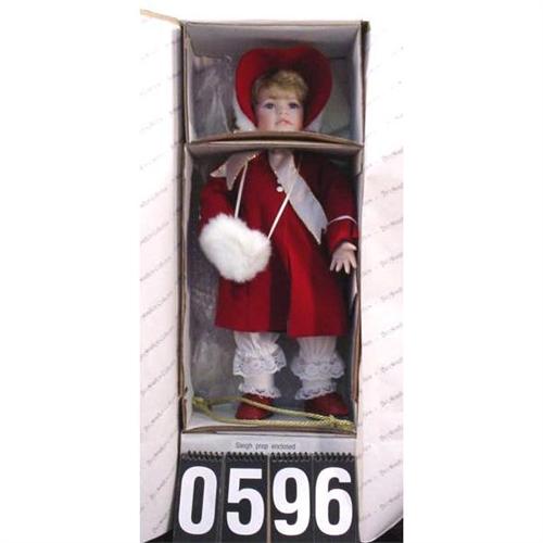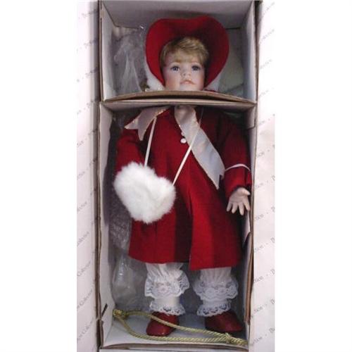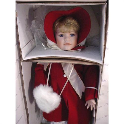 From the Hamilton Collection. "Claudia" sculpted by Helen M. Carr. Made prior to 1995. Doll in red coat and in perfect mint condition with all accessories included. Doll measures 18 inches tall. Box measures 24" x 9" x 6" and weighs 4 lbs 13 oz. [81]