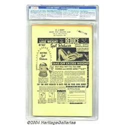 33. Signature Sales: The auction is not on approval. No certified material may be returned because of possible differences of opinion with respect to the grade offered by any third-party organization, dealer, or service. There are absolutely no exceptions to this policy. Under extremely limited circumstances, (e.g. gross cataloging error) a purchaser, who did not bid from the floor, may request Auctioneer to void a sale. Such request for evaluation must be made in writing detailing the alleged gross error, and submission of the lot to the Auctioneer must be preapproved by the Auctioneer. A Bidder must notify bid@heritagecomics.com in writing of the Bidder's request and such notice must be mailed within three (3) days of the mail Bidder's receipt of the lot. Any lot that is to be evaluated must be received in our offices within 30 days from the date of auction. Grading or method of manufacture do not qualify for this evaluation process nor do such complaints constitute a basis to challenge the authenticity of a lot. AFTER THAT 30-DAY PERIOD, NO LOTS MAY BE RETURNED FOR REASONS OTHER THAN AUTHENTICITY. Lots returned must be housed intact in the original holder. No lots purchased by floor Bidders may be returned (including those Bidders acting as agents for others). Late remittance for purchases may be considered just cause to revoke all return privileges.