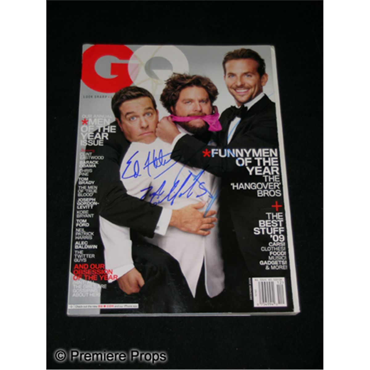 This full “GQ” Magazine featuring the stars of “The Hangover” on the cover has been autographed by the films stars Bradley Cooper, Ed Helms and Zach Galifianakis. Very tough to get these three signatures together!