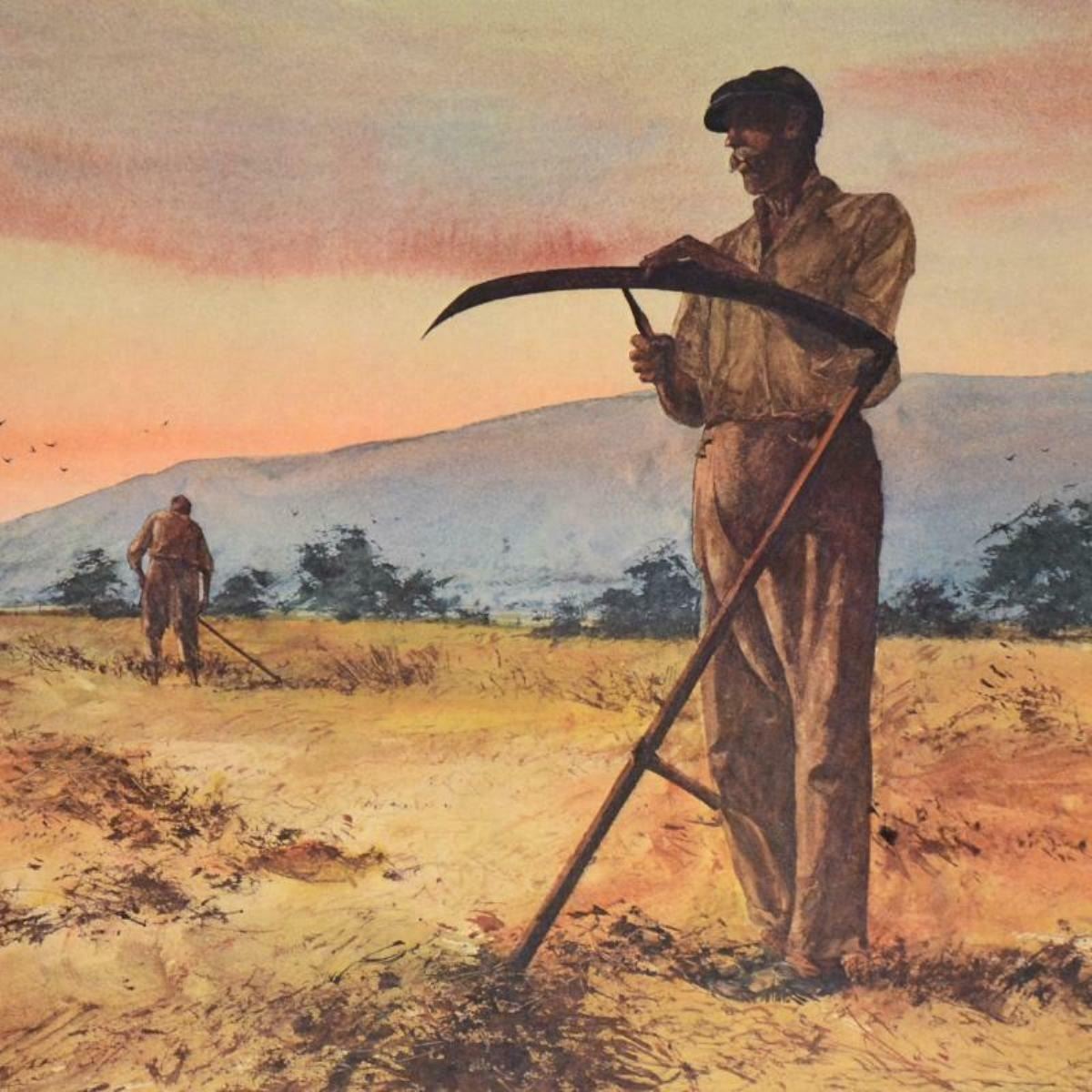 "The Harvesters" is a limited edition serigraph on paper by William Nelson, numbered and hand signed by the artist! Measures approx. 28.5" x 22.5" (with border); 25" x 19" (image).