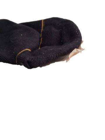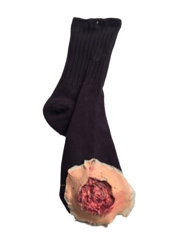 Daisy Domergue (Jennifer Jason Leigh) screen used, hero, black sock with prosthetic gun shot wound, this was in the scene when she gets shot in the foot, comes with the prosthetic bullet wound attached to the sock.(3x3)