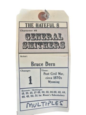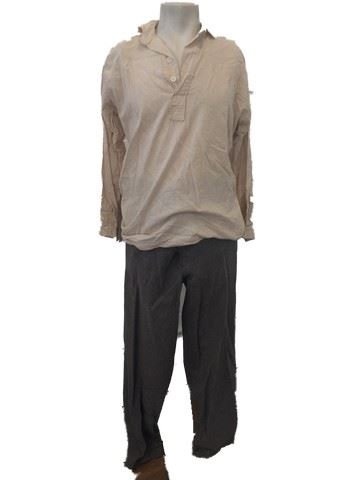 General Smithers (Bruce Dern) screen worn, white weave cotton off white shirt with four buttons, aged grey wool pants with front seam pockets. Includes wardrobe tag.