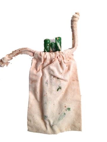 Joe Gage (Michael Madsen) screen used, hero from his table, candy cane Muslin Bag, sour green apple flavor, 3 sticks in the bag.(6x3)