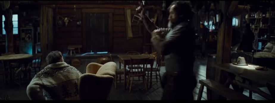 Joe Gage (Michael Madsen) screen used, hero, tall wood chair. This chair has been held in archives since production wrapped and was previously used as part of the traveling roadshow set up to promote the film prior to the release. (approx. 40" x 27" x 28")