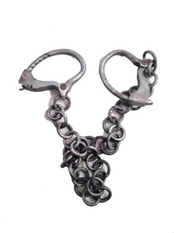 John Ruth (Kurt Russell) & Daisy Domergue (Jennifer Jason Leigh) screen used, hero, grey plastic chain and rubber cuff handcuffs. (31x5)
