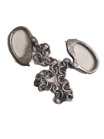 John Ruth (Kurt Russell) & Daisy Domergue (Jennifer Jason Leigh) screen used, hero, grey plastic chain and rubber cuff handcuffs. This is the last pair of handcuffs received from the production! Do not miss your chance to own this piece of memorabilia! (31x5)