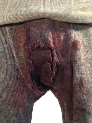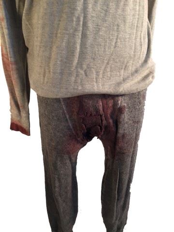 Major Marquis Warren (Samuel L. Jackson) screen worn, grey Henley "J Crew" 3 button up under shirt, grey "Stanfield's" long underwear. Both undergarments have been heavily soiled by production and were used in the scene when he was shot in bed. Pants have gunshot wound. Only one of these costumes is available from production at this time!