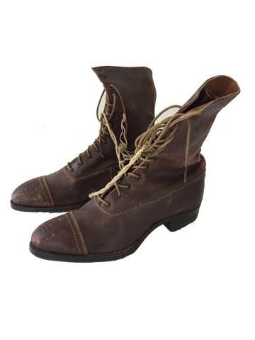 Non-principal character, screen worn, brown ankle boots with heel, very worn. (9" long no size)
