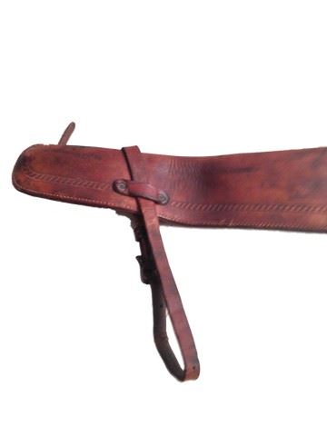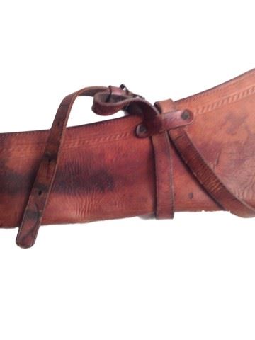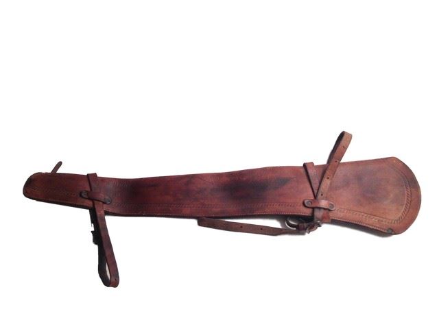 Screen used by a non principal character, this is a leather rifle holster worn when on horseback. (31"x6")