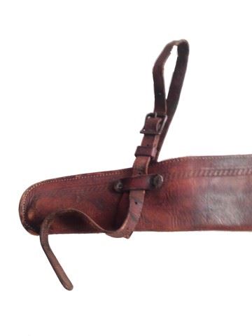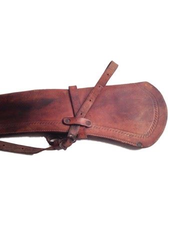 Screen used by a non principal character, this is a leather rifle holster worn when on horseback. (31"x6")