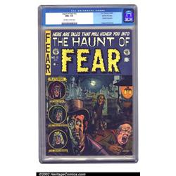 The Haunt of Fear #12 Gaines File pedigree Certificate Missing (EC, 1952) CGC NM+ 9.6 Off-white to white pages. Overstreet denotes this Graham Ingels cover as a "classic." One look at it and you will know why. The background detail is absolutely incredible, and Ingels' ability to render emotions is without equal. This issue also has the added bonus of an Al Feldstein biography. Johnny Craig and Jack Davis also chip in to make this issue stand out as one of the most collectible in the run. Needless to say, the condition on this CGC 9.6 copy is stunning. There is no Gaines File certificate accompanying this lot. Overstreet 2002 NM 9.4 value = $390. Important notice: We expect to be auctioning lots at the rate of 200-250 per hour. Sometimes eBay Premier live bid software cannot keep up with that pace, so we strongly recommend that you place a realistic proxy bid now as insurance to avoid disappointment. Also please note that all Heritage/CAA lots purchased through eBay Premier carry a 20% Buyer's Premium. Please make sure you read the Terms and Conditions.