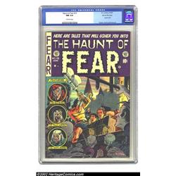 The Haunt of Fear #19 Gaines File pedigree 7/12 (EC, 1953) CGC NM 9.4 Off-white pages. Not one decapitation, but two are about to take place simultaneously, on the cover of this EC classic by Graham Ingels. The colors, corners, and pages are everything that you've come to expect from a Gaines File copy. Used in Wertham's Seduction of the Innocent. Jack Kamen, Jack Davis, and George Evans art. Overstreet 2002 NM 9.4 value = $490. Important notice: We expect to be auctioning lots at the rate of 200-250 per hour. Sometimes eBay Premier live bid software cannot keep up with that pace, so we strongly recommend that you place a realistic proxy bid now as insurance to avoid disappointment. Also please note that all Heritage/CAA lots purchased through eBay Premier carry a 20% Buyer's Premium. Please make sure you read the Terms and Conditions.