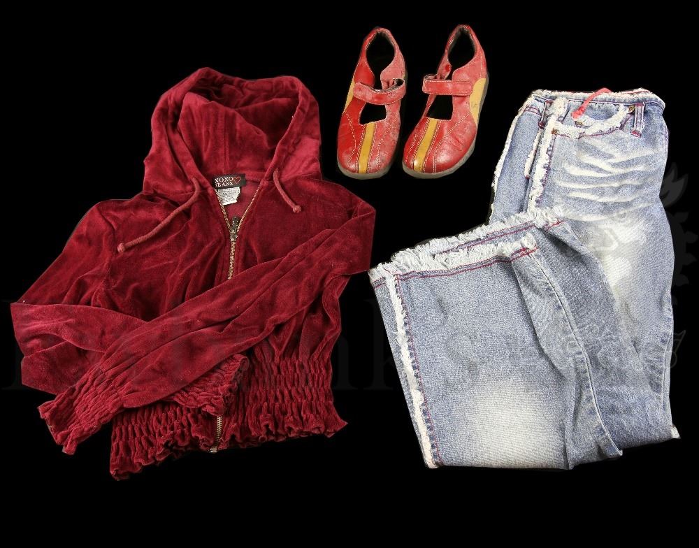 † The Haunted Mansion (2003) 'Megan', Aree Davis costume. Comprises of a pair of jeans (wardrobe label attached), burgundy jacket (wardrobe label attached) and a pair of shoes in western costume bag with wardrobe label attached. Accompanied by a certificate from The Walt Disney Company. Please note that VAT is payable on top of the hammer price at 20% in addition to standard buyers premium inc. VAT for this lot.