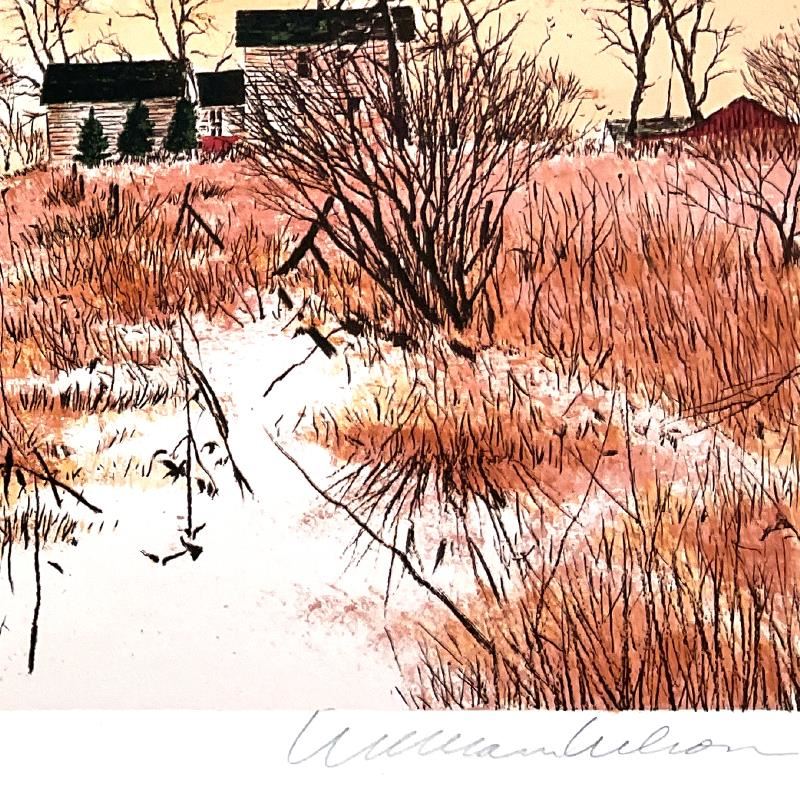The Hayfield by Nelson, William. "The Hayfield" is a limited edition lithograph on paper, numbered and hand signed by William Nelson. Includes Letter of Authenticity. Measures approx. 29" x 22" (border), 27" x 16" (image). There may be minor imperfections