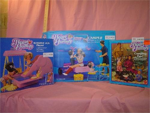 "The Heart Family" Camping Fun #3146, Sunshine Fun Playset #2760, Camper #3316.  By Mattel.  All in original boxes. MIB