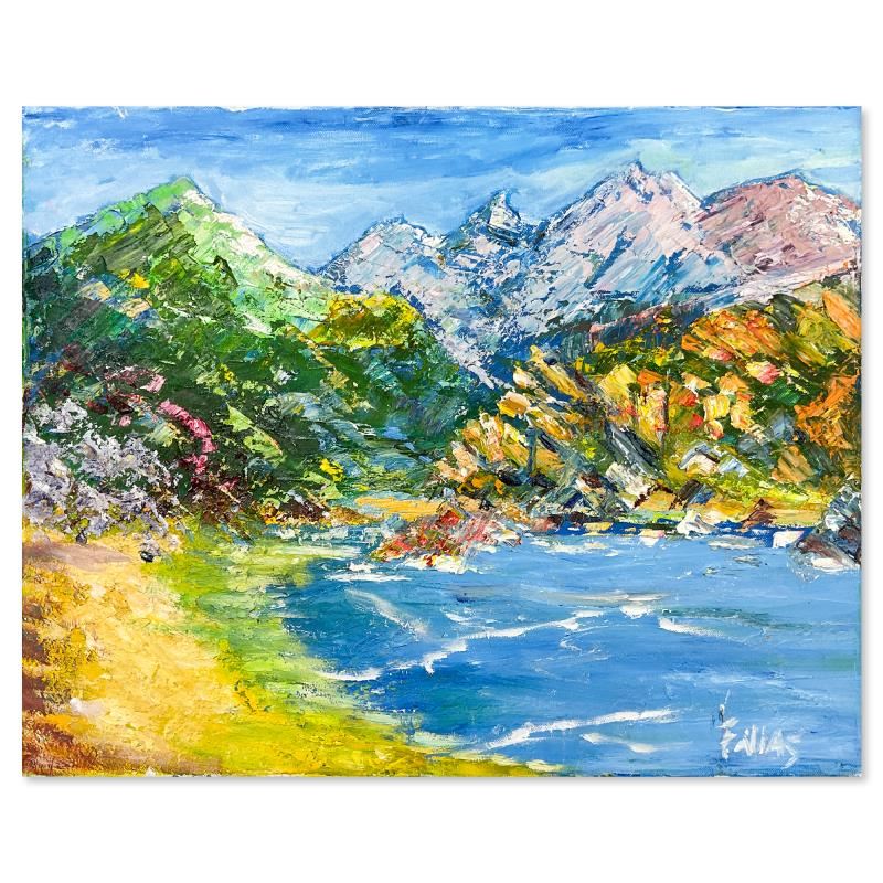 "The Hills are Alive" is an original oil painting on stretched canvas by Elliot Fallas, hand signed by the artist. Includes Letter of Authenticity. Measures approx. 16" x 20" (image). The sides of the canvas are painted and it can be hung as is, but a frame is definitely recommended.