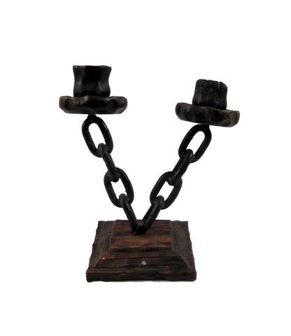 The Hobbit 2 - Metal chain and wood candle holder from set decor. (approx. 10" tall)