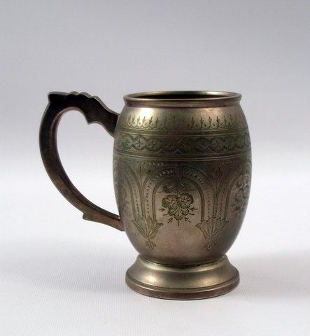 The second installment, "The Hobbit: The Desolation of Smaug" (2013) finds Bilbo Baggins and Gandalf continuing their quest to reclaim Erebor. This is a beautifully engraved and crafted metal mug used in the production. (Approx. 5" tall).