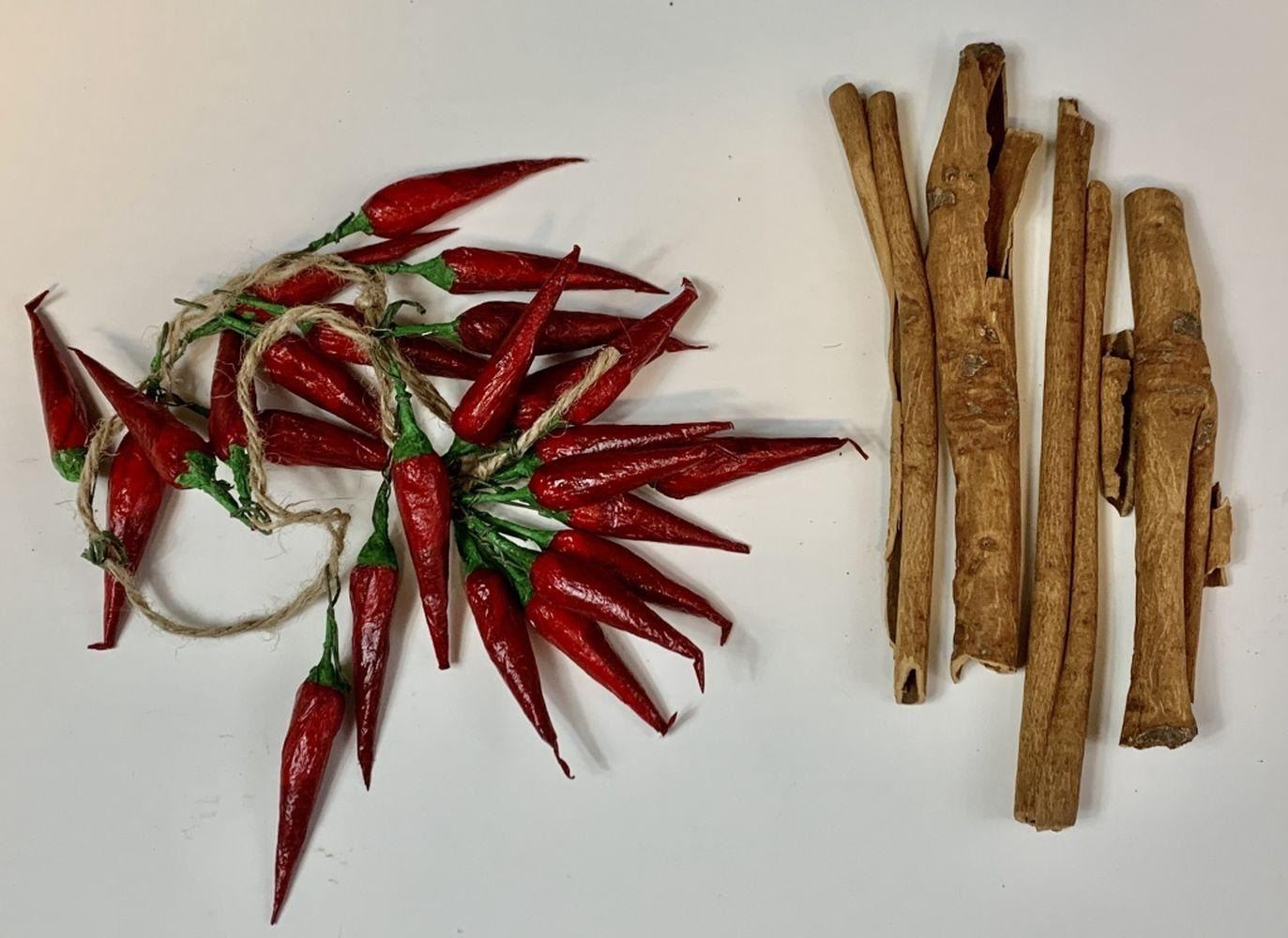 Original Collection of bark pieces from Radagast's (Played by Sylvester McCoy) house and a set of chili pepper set dressing used in the Hobbit trilogy.