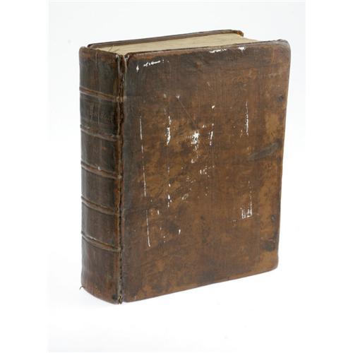 <B><I>The Holy Bible containing the Old and New Testaments</B></I></B></I> (Philadelphia printed and published by Matthew Cary 1811) 4to original old calf boards, spine has been repaired, laid down. Inside hinges splitting. Browning throughout. Pages are dry on edges. Two fold out maps, with family record (Howland family). From the Henry E. Luhrs Collection.