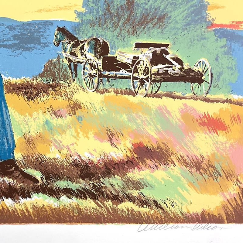 The Homesteaders by Nelson, William. "The Homesteaders" is a limited edition lithograph on paper, numbered and hand signed by William Nelson. Includes Letter of Authenticity. Measures approx. 30" x 23" (border), 28" x 22" (image). There may be minor imper