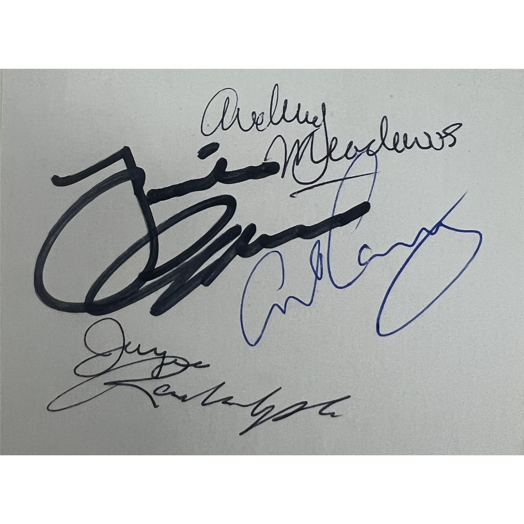 The Honeymooners cast signed card autographed by Jackie Gleason, Audrey Meadows, Art Carney and Joyce Randolph. 3x4 inches