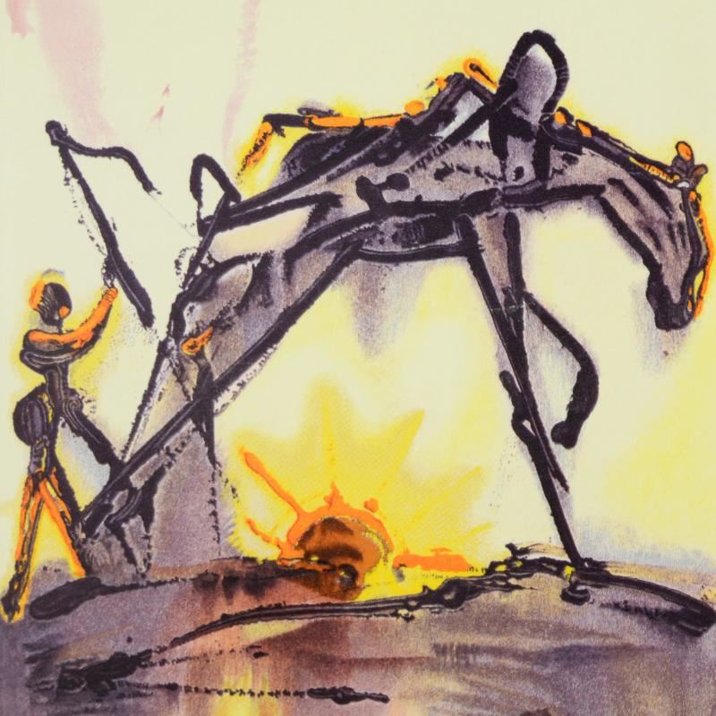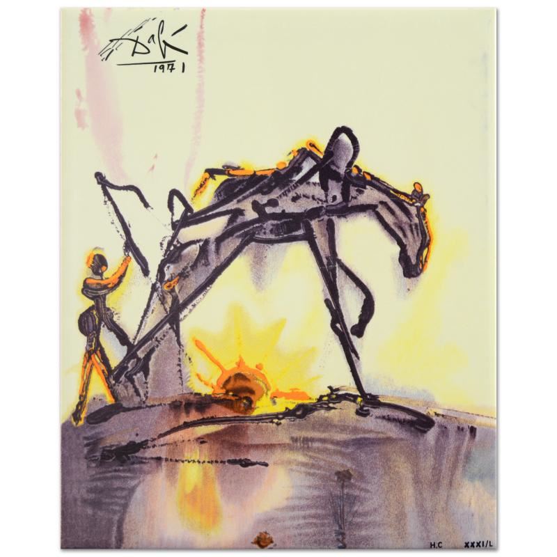 "The Horse of Labor" is a limited edition glazed ceramic tile from a SOLD OUT edition by Salvador Dali (1904-1989), numbered and plate signed! Measures approx. 8" x 10" (tile).