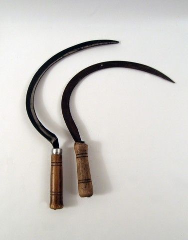 In "The Host" (2013), a sci-fi romantic thriller, based on the book by "Twilight" author Stephenie Meyer, the last remaining people on Earth who have not been taken over by "The Souls", gaseous alien entities who invade solid bodies and take them over, relocated into deep caves, and cultivate their own food, including the "staff of life": wheat. These are two hero screen used rubber and metal sickles used to harvest the wheat in these caves.