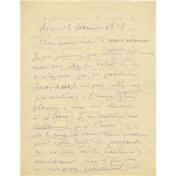 148 - Matisse, Henri. Autograph letter signed ('Henri Matisse', 13 February 1938.Profiles in History