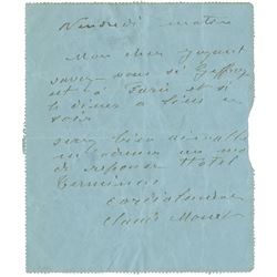148. * Matisse, Henri. Autograph letter signed ("Henri Matisse"), 1-page (8.25 x 10.5 in.; 210 x 267 mm), front and back, in French, &q...