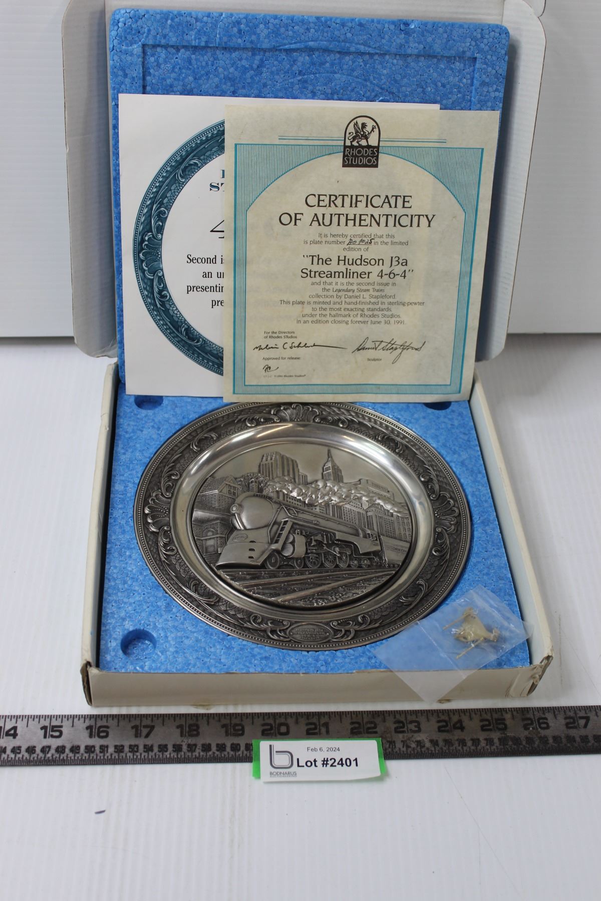 "The Hudson J3A Streamliner" Sterling Pewter Plate w/Certificate of Authenticity