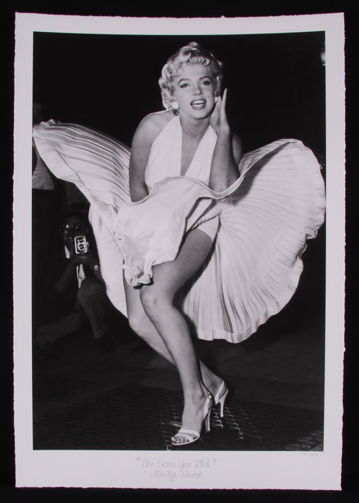 NEW YORK - SEPTEMBER 1954: Marilyn Monroe with the skirt of her white dress blowing as she stands over a subway grate at the corner of 51st Street and Lexington Avenue in September, 1954 during the filming of 'The Seven Year Itch' in New York, New York. (Photo by Sam Shaw/Shaw Family Archives/Getty Images)