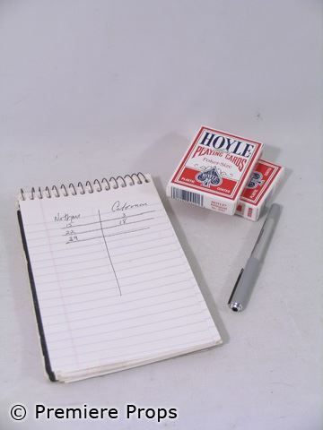 Coleman's (Anthony Hopkins) steno notebook, "Uniball" inkpen, and 2 decks of "Hoyle" poker size playing cards (Notebook has handwritten "Coleman"(Anthony Hopkins) and "Nathan" (Gary Sinise) in two columns with scores from card game.) (Used in film)