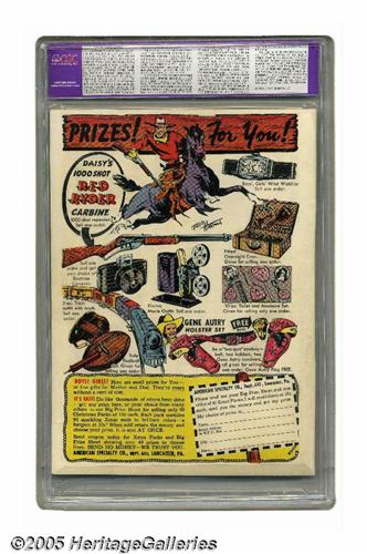 50. Auctioneer offers no opinion as to the validity of a grade assigned by any third-party grading service. Since we cannot examine C.G.A. encapsulated notes or Comics Guaranty Corporation (CGC) encapsulated comics, they are sold "as is" without our grading opinion, and may not be returned for any reason. Auctioneer shall not be liable for any patent or latent defect or controversy pertaining to or arising from any encapsulated collectible. In any such instance, purchaser's remedy, if any, shall be solely against the certification service certifying the collectible.