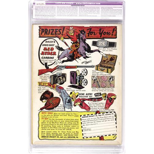 50. Since we cannot examine encapsulated notes or comics, they are sold "as is" without our grading opinion, and may not be returned for any reason. Auctioneer shall not be liable for any patent or latent defect or controversy pertaining to or arising from any encapsulated collectible. In any such instance, purchaser's remedy, if any, shall be solely against the service certifying the collectible.