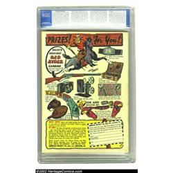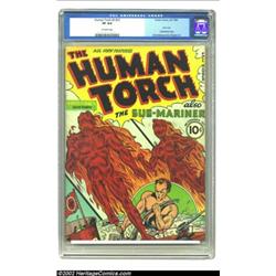 The Human Torch #2 (#1) (Timely, 1940) CGC VF 8.0 Off-white pages. Overstreet ranks this the 24th most valuable Golden Age comic book, and it's moving up the list. Among fellow Timely titles, only the first issues of Marvel Comics and Captain America are higher-valued. Legendary artists Carl Burgos and Bill Everett, having introduced the Human Torch and the Sub-Mariner a few months earlier in Marvel Comics #1, bring the boys to this title. The great Alex Schomburg is responsible for the cover. This awe-inspiring copy misses being the highest-graded of the issue by a scant quarter-grade. Golden Age Timely greatness! Overstreet 2002 VF 8.0 value = $17,500. Important notice: We expect to be auctioning lots at the rate of 200-250 per hour. Sometimes eBay Premier live bid software cannot keep up with that pace, so we strongly recommend that you place a realistic proxy bid now as insurance to avoid disappointment. Also please note that all Heritage/CAA lots purchased through eBay Premier carry a 20% Buyer's Premium. Please make sure you read the Terms and Conditions.