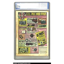 The Human Torch #3 (#2) (Timely, 1940) CGC VF 8.0 Cream to off-white pages. This is a very early Timely superhero comic with a great damsel-in-distress cover by Alex Schomburg. Although the inside indicia says it is issue #3, this is actually the second Human Torch issue. The Human Torch numbering was continued over from the cancelled Red Raven series that lasted but a single issue. The comic contains a 40-page Human Torch story, a Sub-Mariner backup story, and, even more unusual, a text story wherein Human Torch and Sub-Mariner battle over which character has the best artist! This is a very solid VF copy with some foxing on the back cover which is more than compensated for by the intense colors of the front cover--which has almost no foxing. Carl Burgos art. Overstreet 2002 VF 8.0 value = $3,100. Important notice: We expect to be auctioning lots at the rate of 200-250 per hour. Sometimes eBay Premier live bid software cannot keep up with that pace, so we strongly recommend that you place a realistic proxy bid now as insurance to avoid disappointment. Also please note that all Heritage/CAA lots purchased through eBay Premier carry a 20% Buyer's Premium. Please make sure you read the Terms and Conditions.