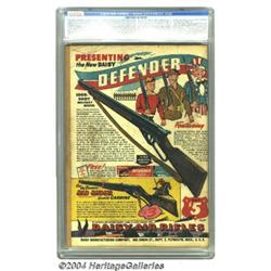 <B>The Human Torch #6 (Timely, 1941) CGC VG 4.0 Cream to off-white pages.</B></I> Let's count the perils the innocent victims face here: monstrous hooded types, Ku Klux Klan lookalikes, bondage, a pit of fire, machine guns... the Human Torch has his work cut out for him in another frantic Alex Schomburg scene. Meanwhile, Prince Namor displays impeccable manners by not intruding on another hero's big moment (even he can't resist sneaking a peek at Schomburg action). Subby gets his turn inside the comic in a story drawn by his creator Bill Everett. CGC notes, "Centerfold detached." Overstreet 2004 VG 4.0 value = $440. <BR><BR><B>Important notice:</B> Heritage usually auctions material at the rate of 200-250 lots per hour. On some occasions eBay Live bid software or the Internet may not be able to keep up with the pace of the auction. We recommend placing a realistic absentee bid now as insurance to avoid disappointment. Occasionally the auctioneer may eliminate or reject an eBay Live bid, and the auctioneer may also reopen a lot after the close of the eBay live bidding (usually because we missed an audience bid), and may reject your bid even if it shows you as the winning bidder. By bidding via eBay Live, you agree that Heritage may award the lot to another bidder at its sole discretion under the circumstances described above or any other reasonable circumstances. Since eBay bids are not shown to us until we open the lot on the floor, we treat those bids just like floor bids. In most cases the floor responds before the eBay bid is presented to us, due to Internet lag time, so for consistency we have made it a policy that floor bids are always considered first over tie eBay live bids. Also please note that all Heritage lots purchased through eBay Live carry a 20% Buyer's Premium. Please make sure you read the Terms and Conditions before you bid. </span></font></tr></table></td></tr></table>