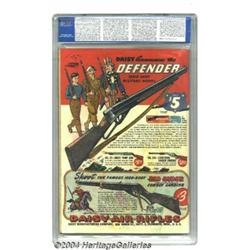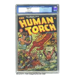 The Human Torch #7 (Timely, 1942) CGC FN/VF 7.0 Off-white pages. The Human Torch arrives in the nick of time to rescue Toro from a sadistic death. Overstreet credits this Alex Schomburg creation as being the first Japanese war cover. This issue also contains a Sub-Mariner story. Gerber's The Photo-Journal Guide to Comic Books designates this issue as being "uncommon." There are currently only three unrestored copies of this issue that have been graded higher by CGC. Overstreet 2003 FN 6.0 value = $678; VF 8.0 value = $1,413. Important notice: Heritage usually auctions material at the rate of 200-250 lots per hour. On some occasions eBay Live bid software or the Internet may not be able to keep up with the pace of the auction. We recommend placing a realistic absentee bid now as insurance to avoid disappointment. Occasionally the auctioneer may eliminate or reject an eBay Live bid, and the auctioneer may also reopen a lot after the close of the eBay live bidding (usually because we missed an audience bid), and may reject your bid even if it shows you as the winning bidder. By bidding via eBay Live, you agree that Heritage may award the lot to another bidder at its sole discretion under the circumstances described above or any other reasonable circumstances. Since eBay bids are not shown to us until we open the lot on the floor, we treat those bids just like floor bids. In most cases the floor responds before the eBay bid is presented to us, due to Internet lag time, so for consistency we have made it a policy that floor bids are always considered first over tie eBay live bids. Also please note that all Heritage lots purchased through eBay Live carry a 20% Buyer's Premium. Please make sure you read the Terms and Conditions before you bid.