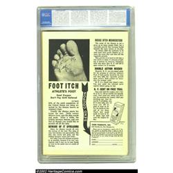 The Human Torch #9 (Timely, 1942) CGC VF+ 8.5 Off-white pages. There seems to be some debate whether or not Master Schomburg was responsible for the brilliant cover; we'll just describe it as Schomburgesque, which is still pretty high praise. The Human Torch and Toro battle the Desert Fox himself, General Rommel, as he attempts capturing the Suez Canal. The bright yellow background of the logo is augmented by the yellow sands of the Sahara to create a blinding effect, particularly on this superbly preserved copy. It's so nice, Near Mint seems a possibility until an up-close review shows enough slight stress marks to determine CGC's assessment of Very Fine Plus. Highly recommended! This book was purchased from George Olshevsky as the Chicago copy, although CGC has not noted that information on the label. Overstreet 2002 VF 8.0 value = $1,307; NM 9.4 value = $$2,300. Important notice: We expect to be auctioning lots at the rate of 200-250 per hour. Sometimes eBay Premier live bid software cannot keep up with that pace, so we strongly recommend that you place a realistic proxy bid now as insurance to avoid disappointment. Also please note that all Heritage/CAA lots purchased through eBay Premier carry a 20% Buyer's Premium. Please make sure you read the Terms and Conditions.
