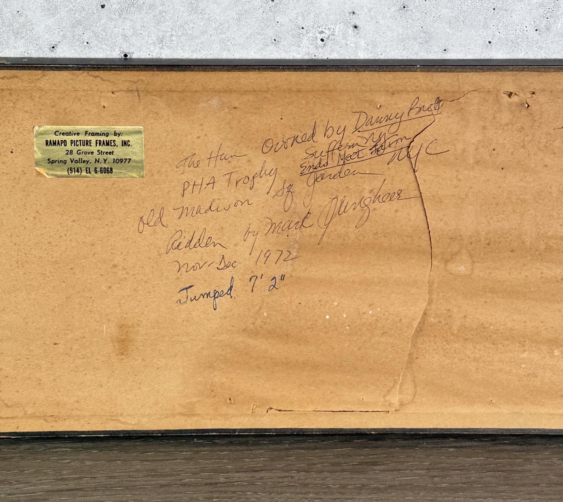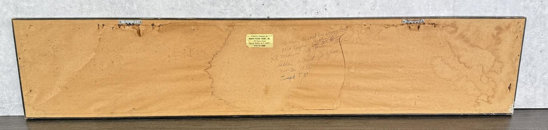 7 1/2" by 37" framed. The Hun. Ends Meet Farm Suffern New York.