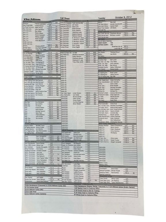 The Hunger Games: Catching Fire (2013) - Call Sheet.