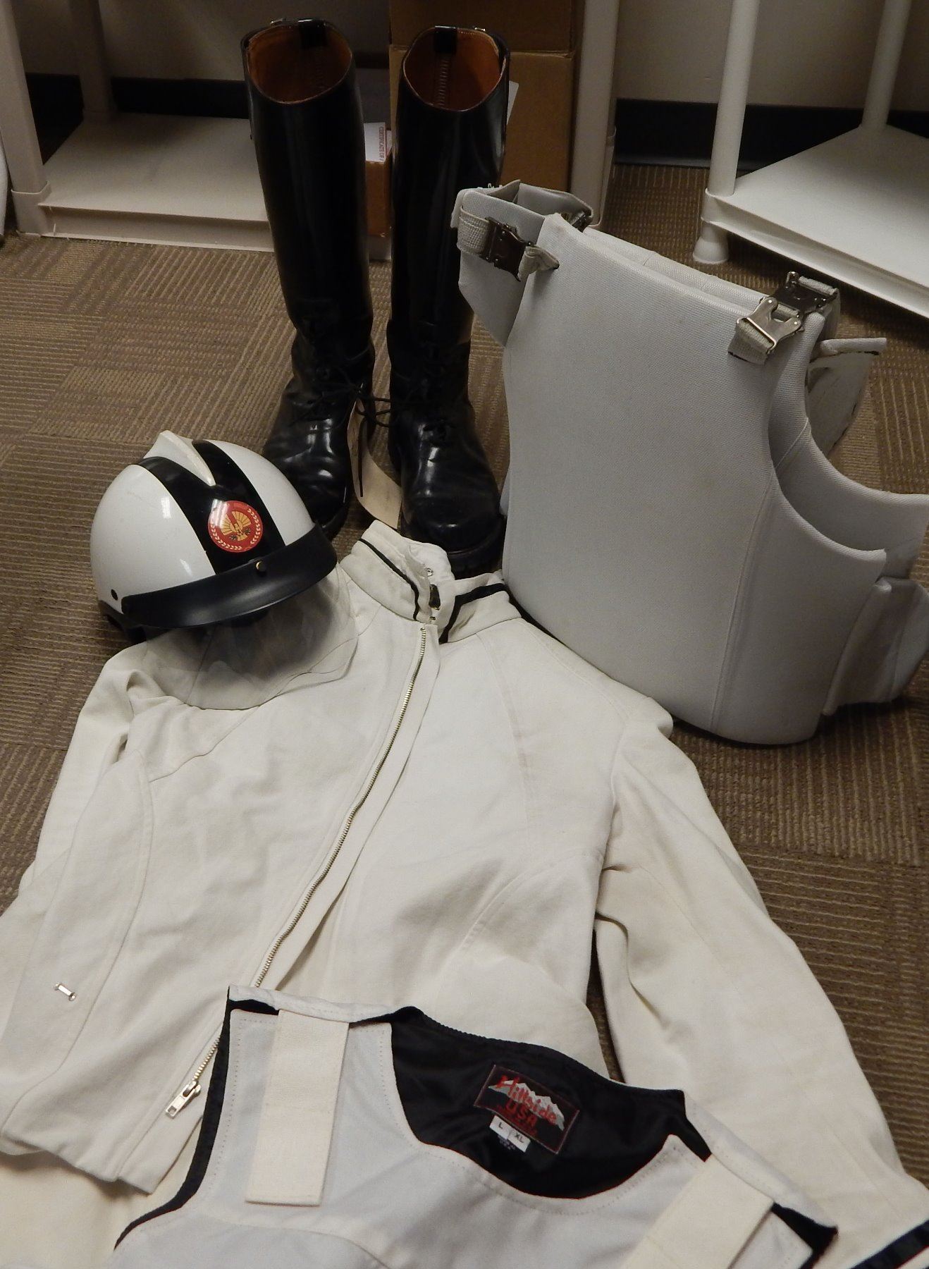 Screen worn Peacekeeper outfit from the hit film The Hunger Games. The suit includes the pants, jacket, vest, protective gear, helmet and boots. All items come with a certificate of authenticity good for the life of the piece.