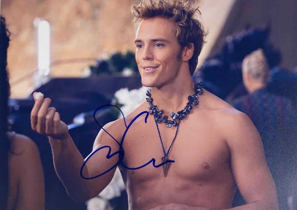 The Hunger Games Sam Claflin facsimile signed movie photo. 8x10 inches. This item is a reprint of an original autograph